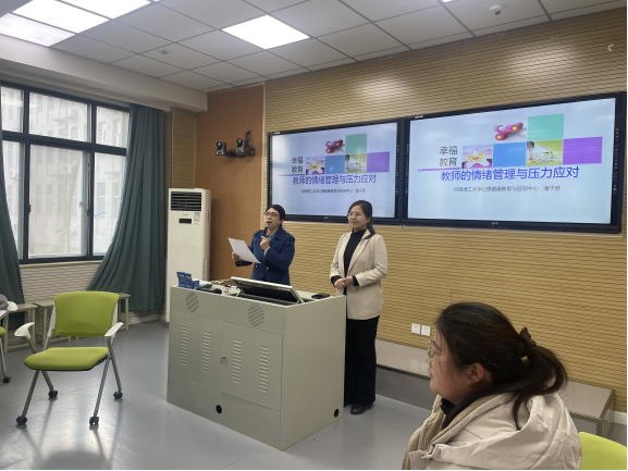 12 月 18 日下午,我校在行政楼北区智慧教室举办了一场题为《教师的情绪管理与压力应对》的心理讲座。此次讲座旨在进一步提升教师心理健康素养和自我心理调节能力。